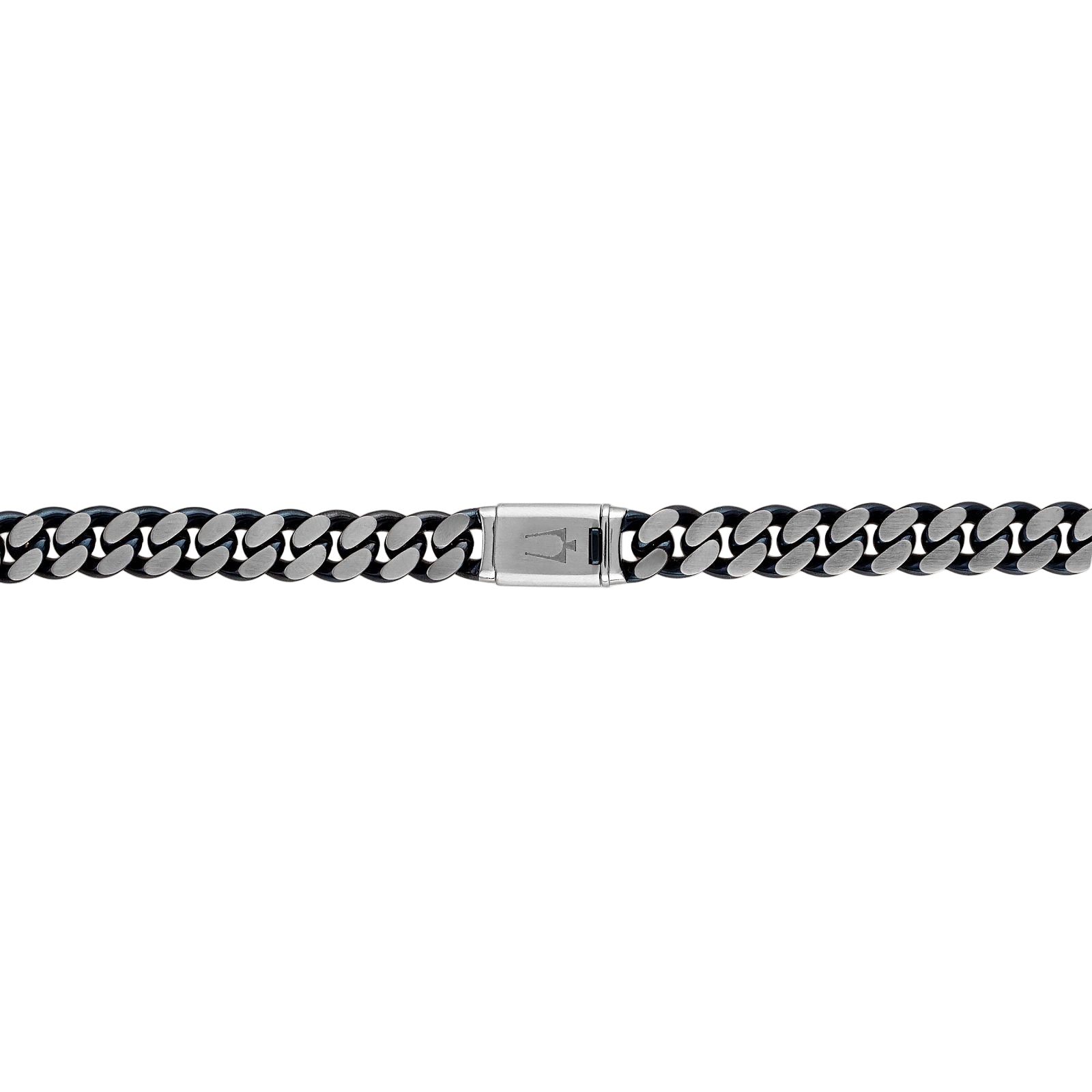 The Bulova 24" Classic Stainless Steel Curb Chain Necklace is a timeless piece that showcases sophistication and style for the modern man. This exquisite necklace features a unique blend of dual-surfaced links, offering a sleek and contemporary design that measures a generous 24 inches. Crafted from high-quality 10MM blue-tone stainless steel, it combines both polished and brushed finishes, making it a versatile accessory for any outfit. The custom-designed clasp, shaped like the iconic Bulova tuning fork, not only ensures secure wear but also adds a touch of branding with its subtly brushed surface. Elevate your fashion game with this stunning necklace from the Fashion Jewelry For Men collection, perfect for both casual and formal occasions.