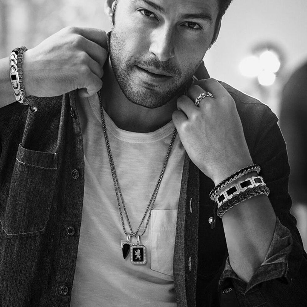 The Bulova Men's Antique Finish Link Bracelet is a standout piece from the exquisite Bulova Link Collection, designed for the modern man who values both style and sophistication. This stunning 10mm black-tone stainless steel bracelet is not just an accessory, but a statement that exudes confidence and elegance. The iconic tuning fork design element adds a unique touch, making it a perfect addition to both casual and formal outfits. With its robust construction and sleek aesthetic, this bracelet is destined to become a timeless staple in any fashion-forward man's jewelry collection. The secure box lock clasp, beautifully etched with Bulova's signature logo, ensures that you can wear it with confidence all day long.