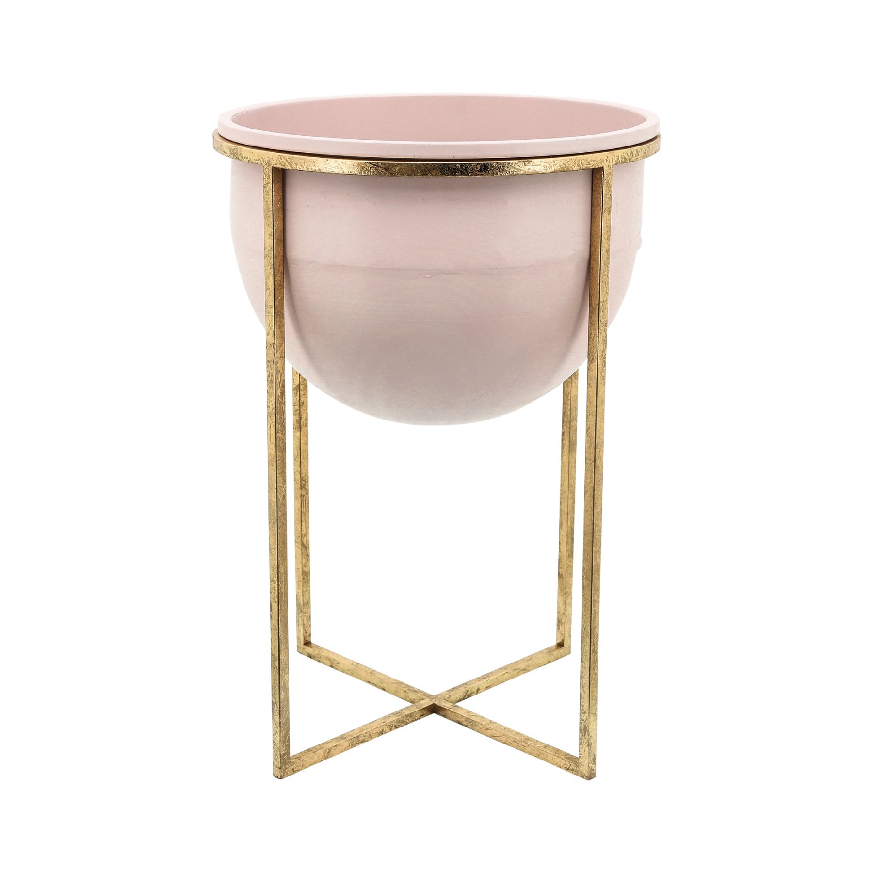 • Elegantly designed pink and gold metal planters to complement any decor theme.