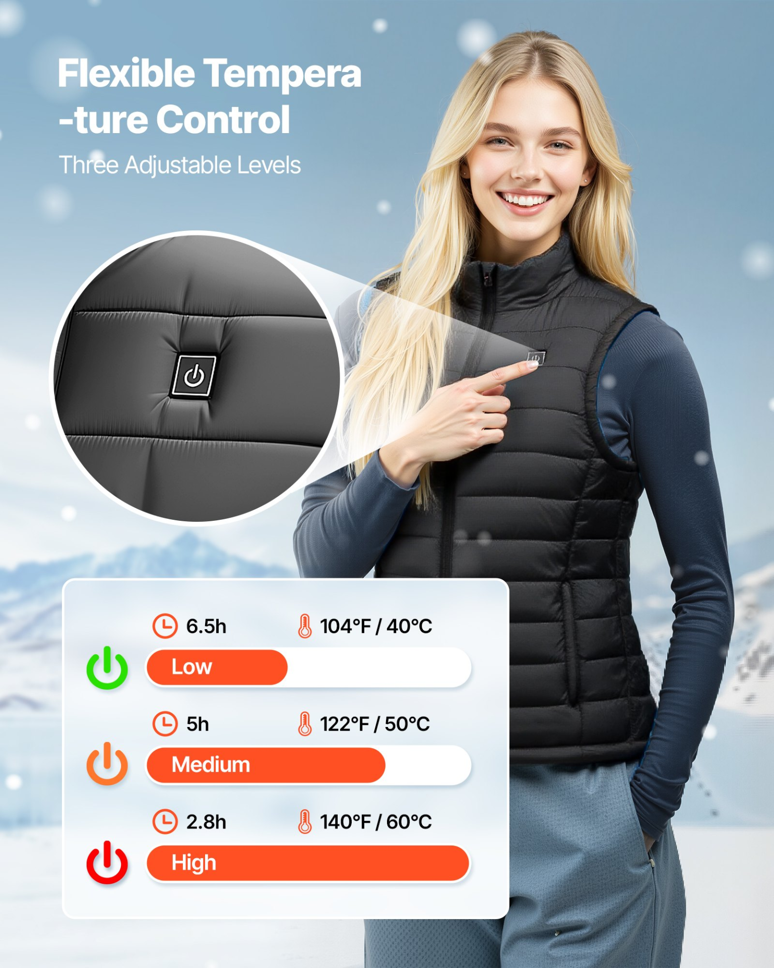 Heated Vest, Women Electric Heating Vest with 16000 mAh Battery Pack, 8 Heating Zones Lightweight Rechargeable Winter-Vest with 3 Levels, for Outdoor Hiking Camping Fishing Skiing, Size L