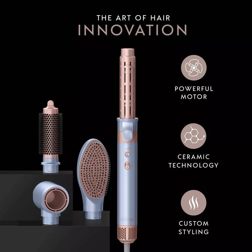 Transform your hair routine with the Conair InfinitiPRO DigitalAIRE Styling Wand—a powerful 1200-watt tool that combines drying and styling in one. The brushless motor delivers superior performance while minimizing heat damage, making it ideal for all hair types. Four interchangeable attachments let you smooth, curl, volumize, or shape your hair exactly as you envision. Ionic technology fights frizz for shinier, healthier-looking results, while ceramic heating ensures even temperature distribution. With three heat and two speed settings plus a cold shot function, you control every aspect of your styling. Whether you're creating sleek looks, bouncy waves, or defined curls, this versatile wand makes professional results achievable at home.