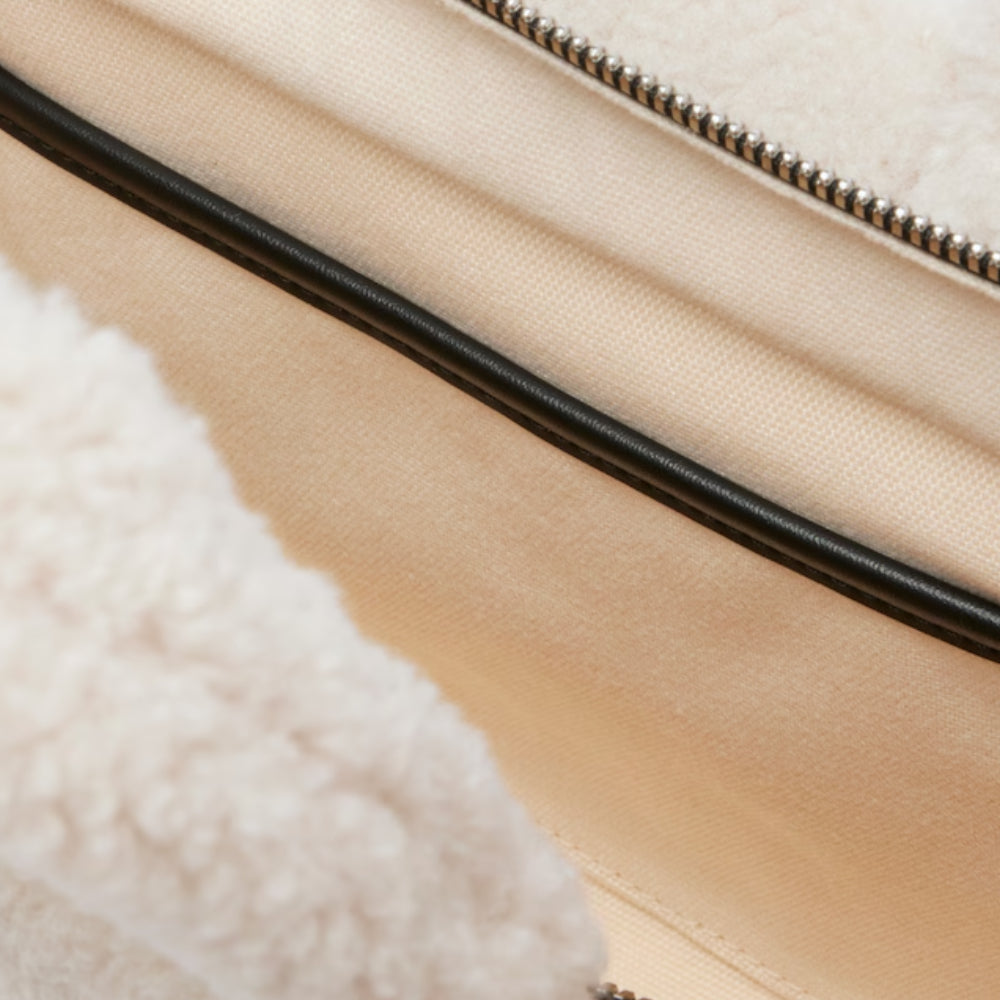 - Soft textured exterior adds a cozy yet elevated touch to modern street outfits