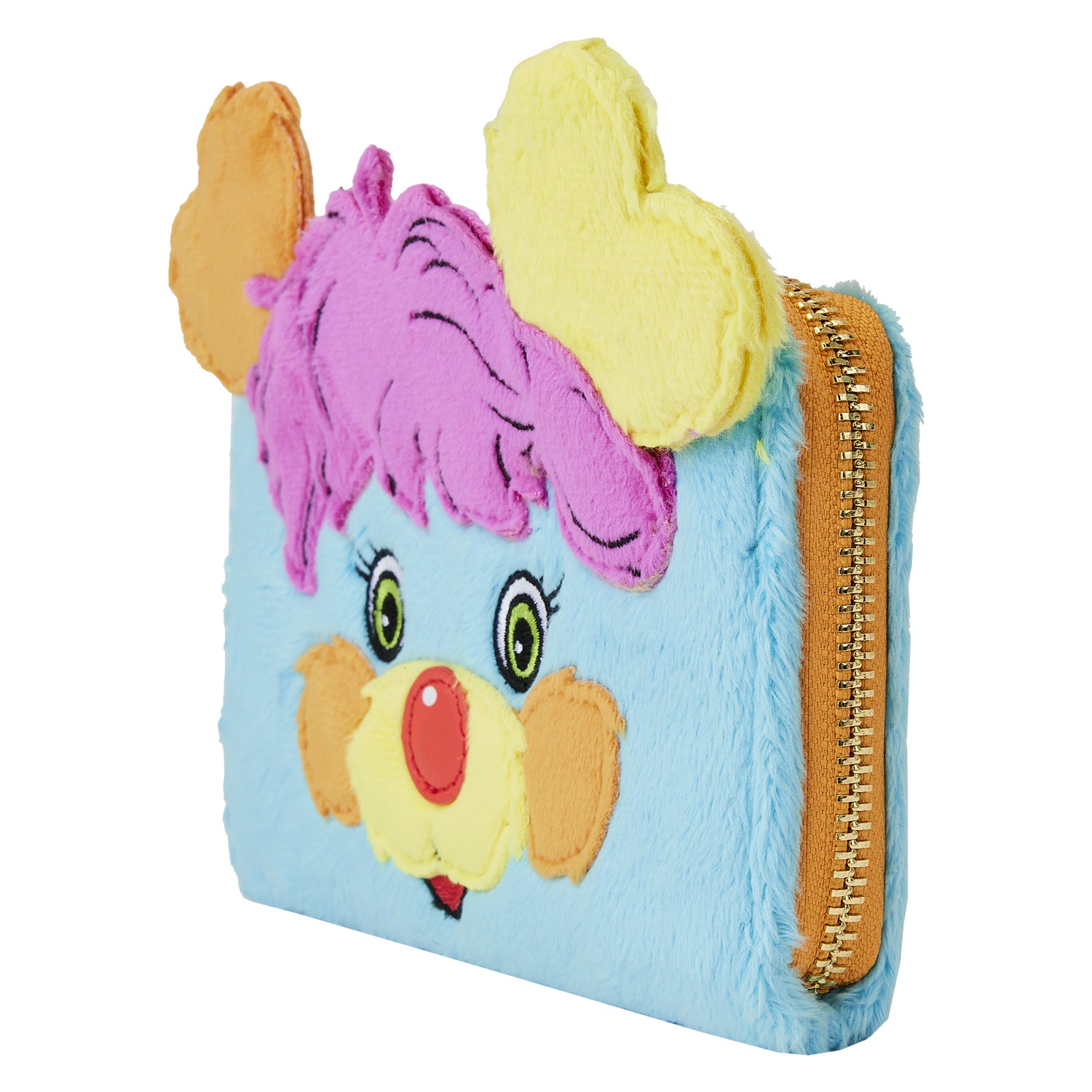 Make way for a pal that pops! The Loungefly 6" Popples Cosplay Plush Zip Around Wallet Faux Fur - Blue brings a beloved toy to life in a stylish and functional accessory. Covered in soft, cuddly plush, P.C. Popple comes to life on the front with vibrant face and hair details that are sure to turn heads. This playful wallet not only serves as a nostalgic nod to childhood favorites, but it also boasts practicality with four slots for holding cards and a clear slot for your ID. The plush details continue on the back, making it a delightful addition to any adventure. Whether you're heading out for a casual day or attending a themed event, this wallet is perfect for expressing your unique style while keeping your belongings safe and organized.