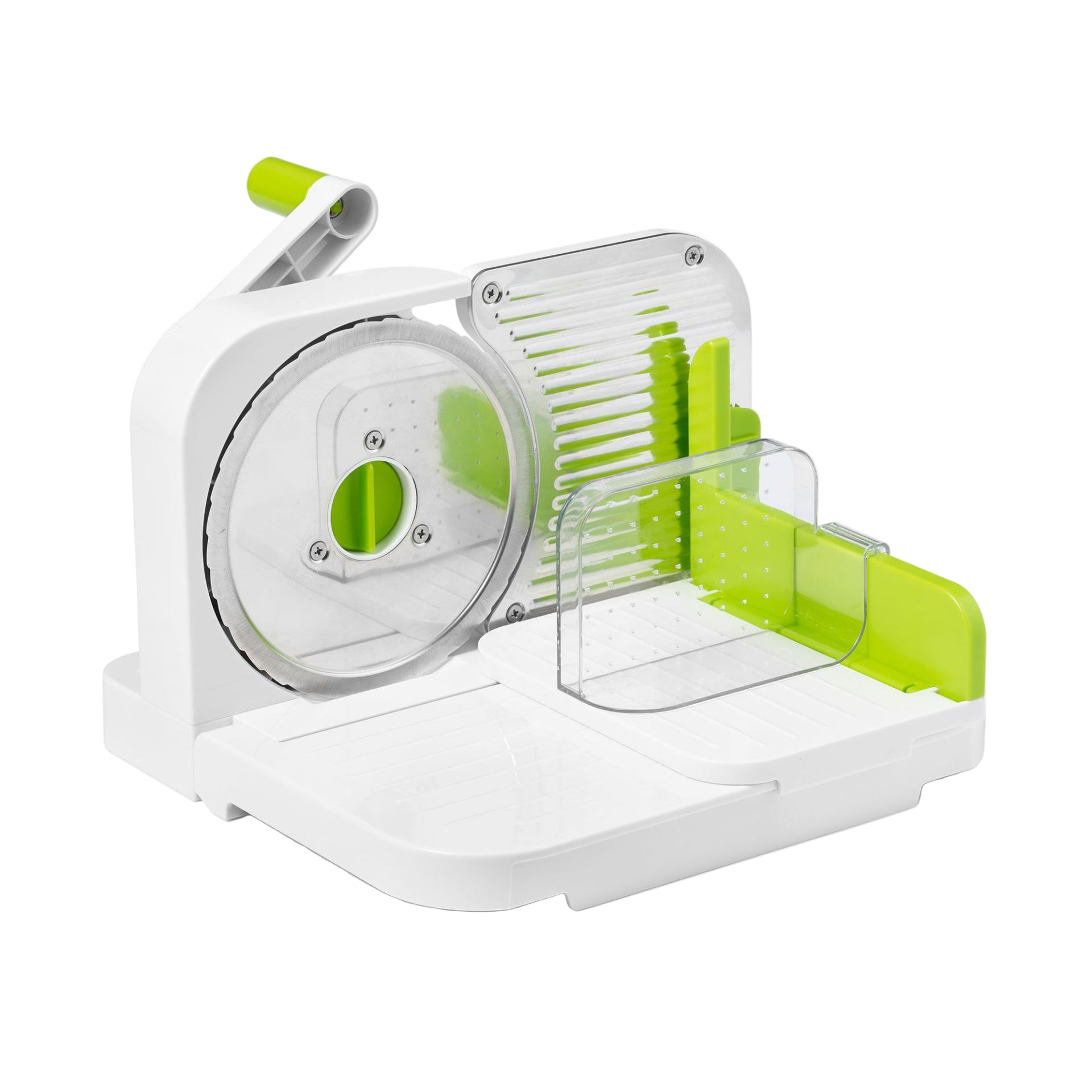 - 6.5" stainless steel serrated rotary blade for precise slicing