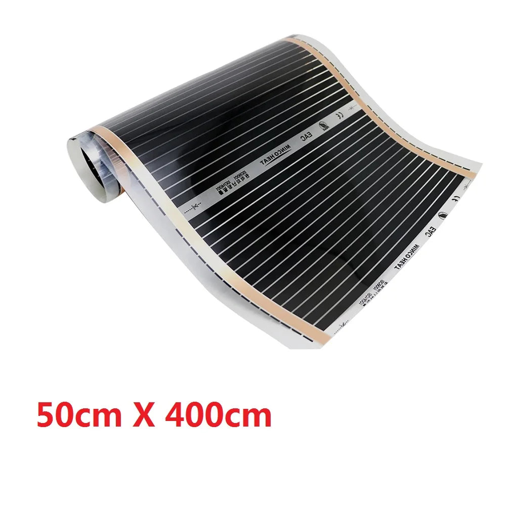The All Sizes 140w/m2 Infrared Heating Film 220V Electric Warm Floor Mat 50cm Width Made In Korea is designed for those who value warmth, comfort, and energy efficiency in their indoor spaces. Made from premium carbon material, this cutting-edge heating film employs infrared technology to deliver soothing warmth that replicates the natural heat of the sun. Unlike conventional heating methods that can lead to dry air, this innovative film heats objects and people directly, ensuring a comfortable and healthy environment. With its effortless installation, high energy efficiency, and silent operation, this heating mat is the perfect solution for homes, offices, and any indoor areas requiring consistent warmth without sacrificing style or comfort.