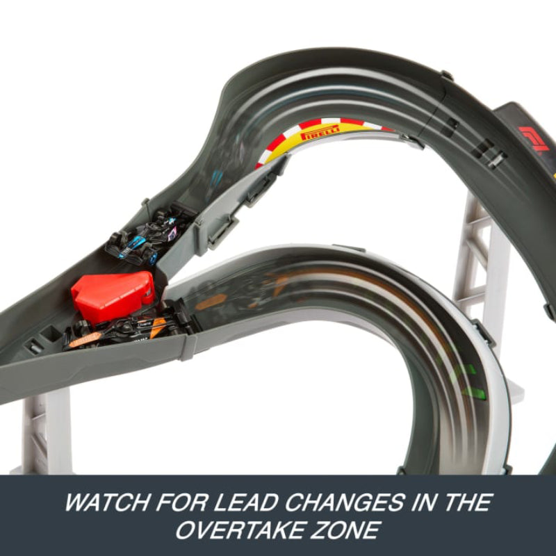 - Race like the pros with real Formula 1-inspired Hot Wheels track action.