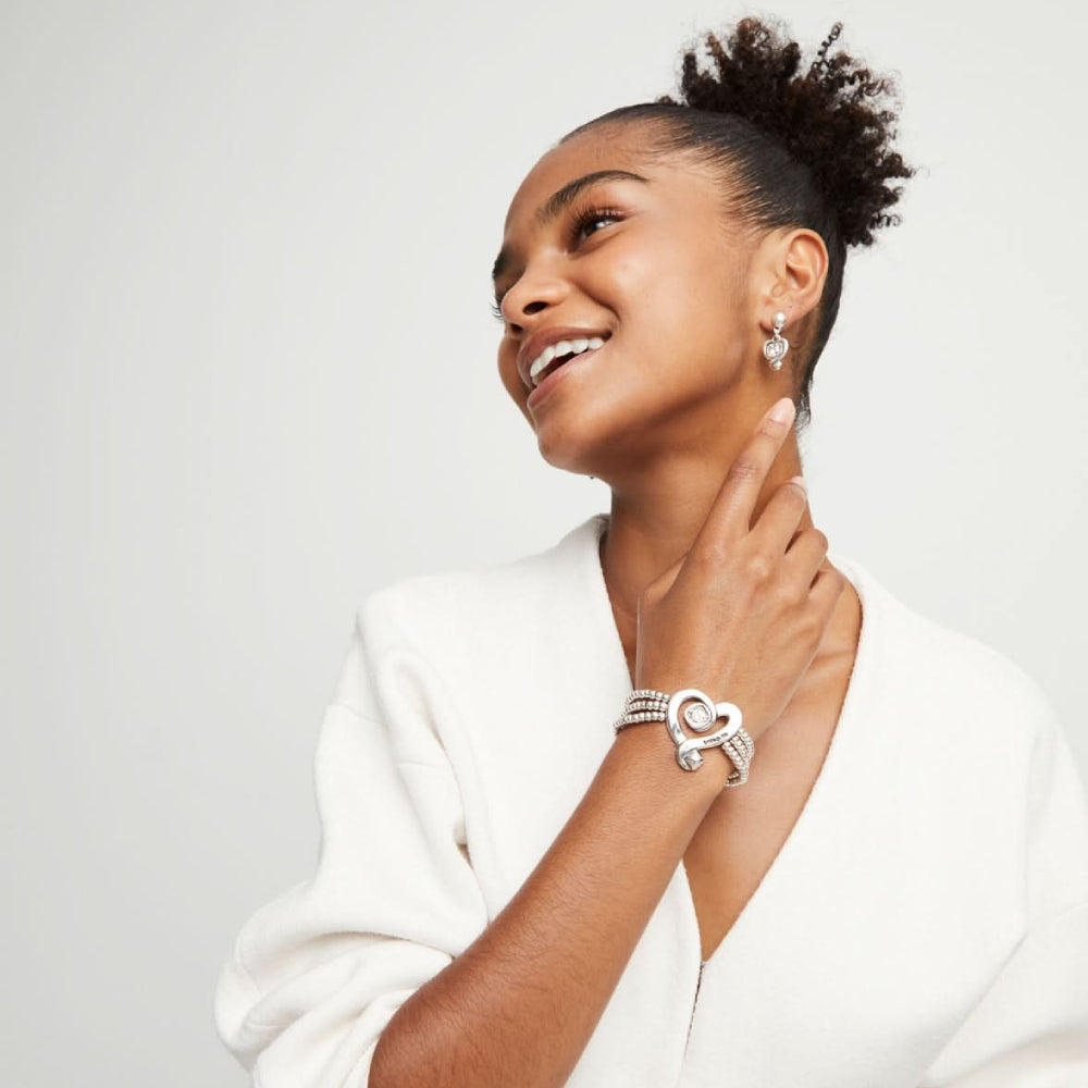 Bead bracelet with sterling silver-plated heart and white crystal. Ser Expresiva is to be transparent. Convey your emotions and ideas in an energetic, striking and authentic way. Take risks with vibrant colors. Live with passion. Be open and honest. Open your heart in the form of jewelry. Play with your necklaces, your way. The time to Ser Expresiva is now.