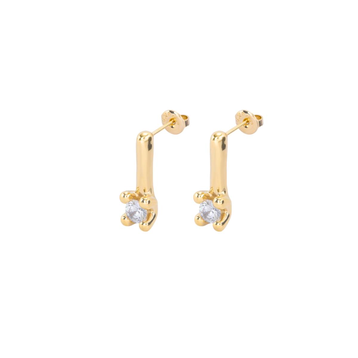 These elegant earrings feature brilliant white zirconia, held securely by bold, sculptural claws. Part of the Spiritual collection, the design explores themes of inner peace and freedom. The crystals symbolize the cosmos and a deeper connection to the divine. A refined accessory that blends beauty with meaning.