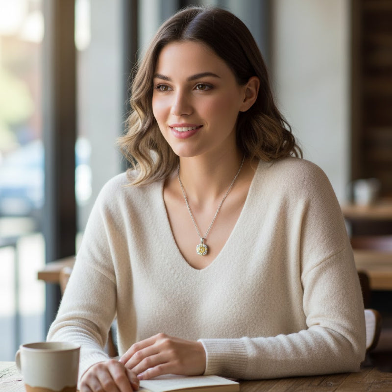 This stunning Le Vian Couture pendant showcases a radiant Fancy Light Yellow Diamond at its center, beautifully framed by delicate Vanilla Diamonds that create an elegant, floral-inspired silhouette. Crafted in luxurious Platinum, the pendant blends warm golden tones with bright diamond brilliance, resulting in a breathtaking design that exudes sophistication and rare beauty. Paired with a refined chain, this necklace offers timeless elegance perfect for special occasions or everyday luxury.