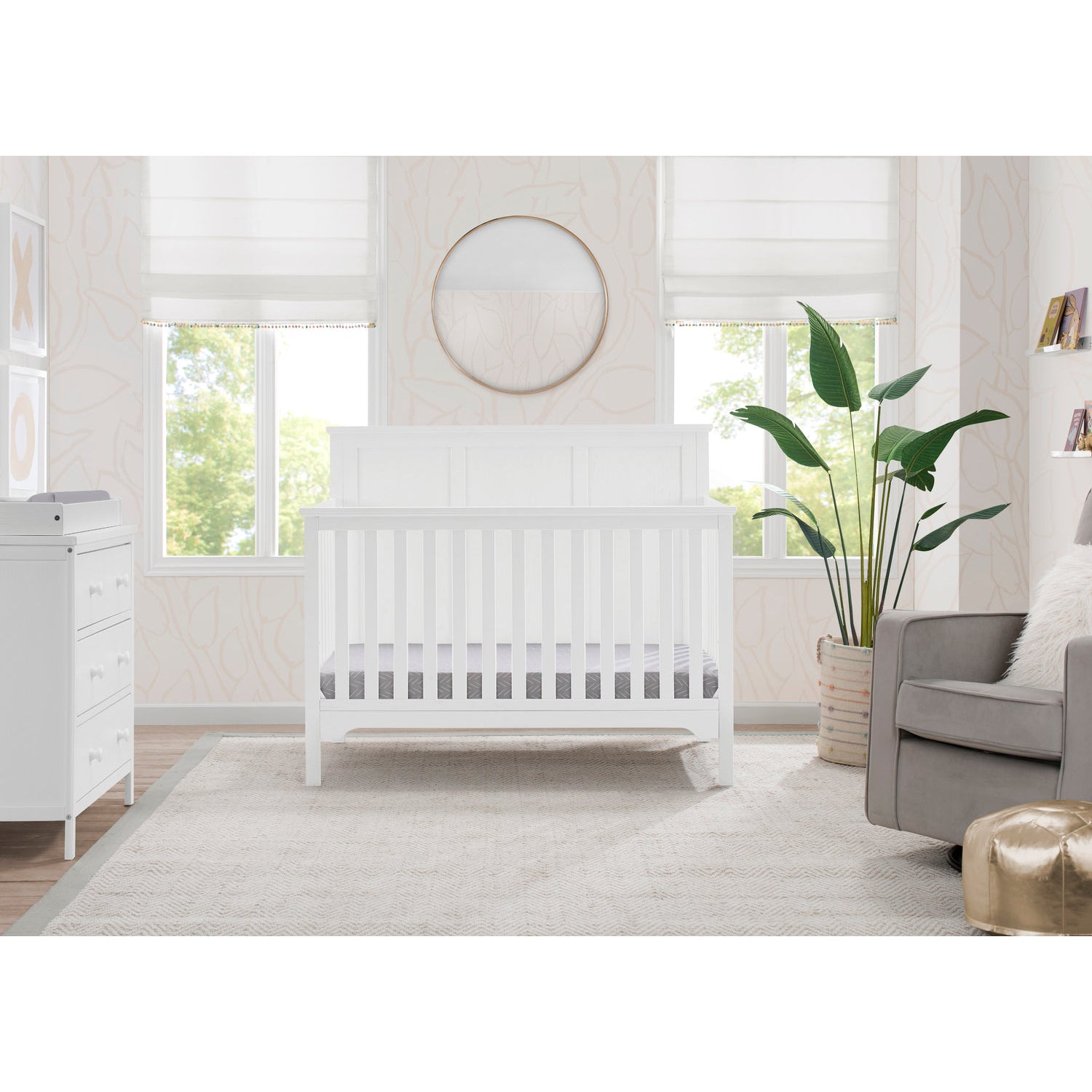 Delta Children Sweet Beginnings Sage Flat Top White 6-in-1 Convertible Wooden Crib