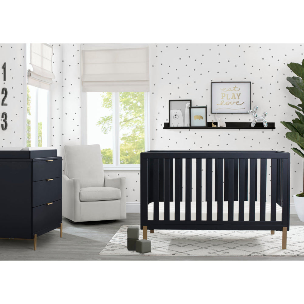 The Hendrix Convertible Crib by Delta is the perfect blend of functionality and style for your little one's nursery. Crafted from high-quality pine wood, this crib not only offers durability but also brings warmth to any kids' room. With its chic bronze legs, it adds a modern touch that complements any decor. Designed with your child's growth in mind, the crib features a 3-position adjustable mattress support, ensuring comfort at every stage. As your child transitions to a toddler, the Hendrix Convertible Crib easily transforms into a stylish daybed, making it the only bed they'll ever need. Invest in a piece that grows with your family, providing safety and style for years to come.