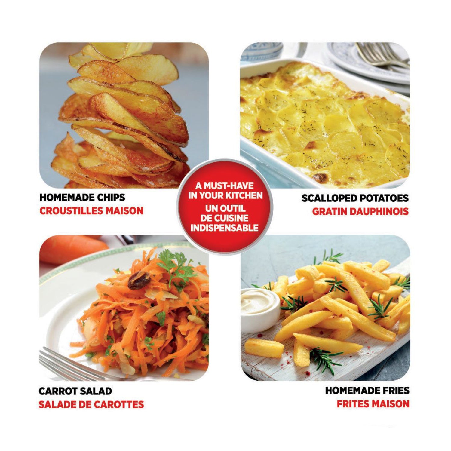 • Quickly slice, dice, or julienne fruits and vegetables effortlessly