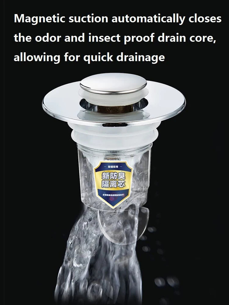 Introducing the Universal Basin Pop-up Drain Filter Wash Basin Hair Sink Strainer Kitchen Bathtub Stopper Shower Plug Bathroom Tool, the ultimate solution for maintaining a clean and functional sink in your kitchen and bathroom. Designed to fit most standard sink drains (1.3"~1.65"), this innovative drain stopper not only prevents odors and keeps insects away but also features a cutting-edge magnetic suction mechanism that ensures a tight seal. Say goodbye to unpleasant smells and clogged drains, as the anti-clogging basket filter captures hair, coins, and other debris effectively. Crafted from high-quality brass and stainless steel, this durable strainer is built to last, providing a flat, comfortable touch and easy cleaning. Installation is hassle-free"”simply replace your old drain plug with this easy-fit stopper for instant results. Product Highlights. Universal fit for sinks (1.3"~1.65"), ensuring compatibility with most installations. Protective cover prevents odors and insects, maintaining a fresh environment. Anti-clogging design with a basket filter for easy cleaning. Durable construction with brass core and stainless steel body for longevity. Simple, tool-free installation process for convenience.