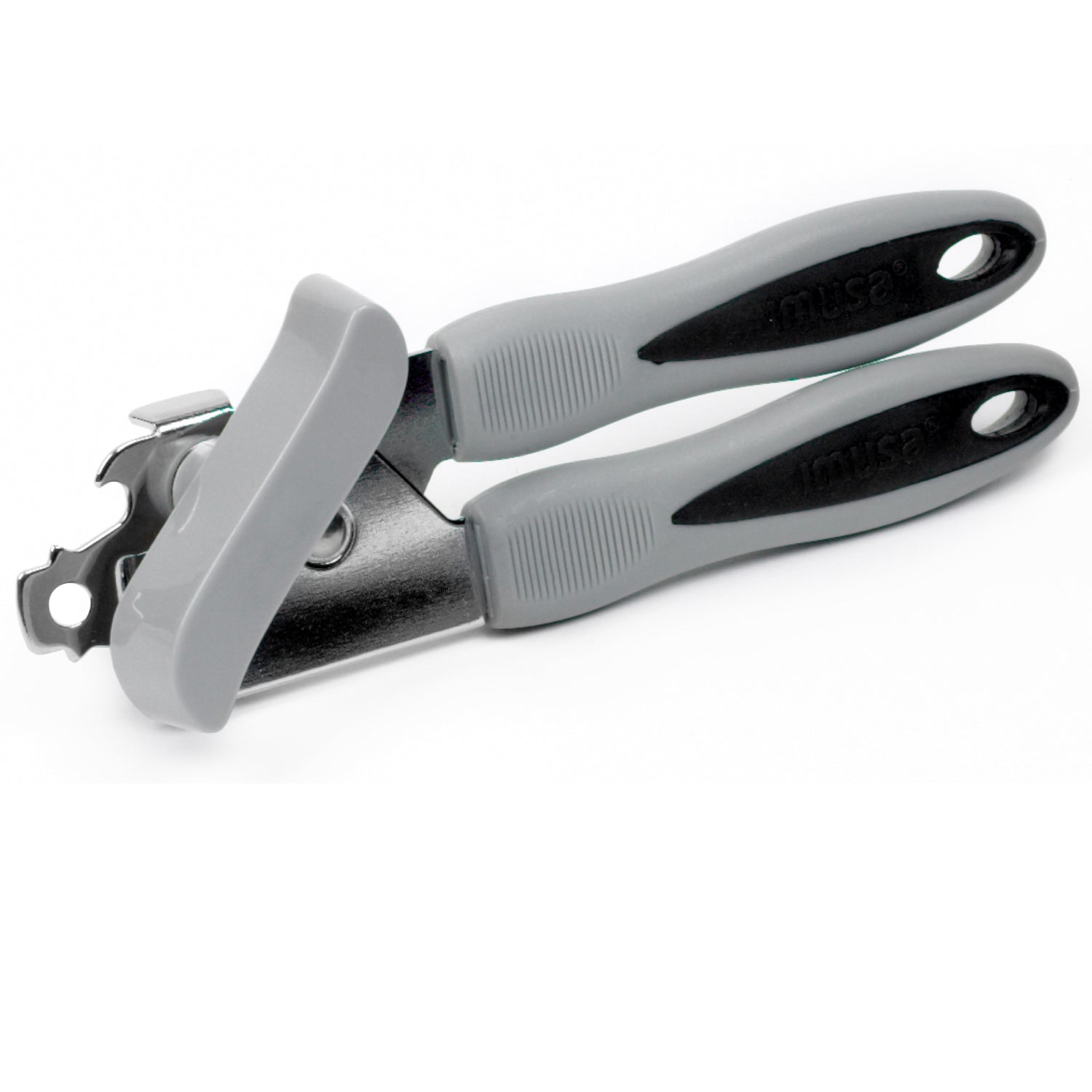 The IMUSA Can Opener - Gray is an indispensable addition to your kitchen tools and utensils collection. Designed to make opening cans effortless and efficient, this can opener features a sturdy steel construction and comfortable ergonomic gray handles that provide excellent grip and control. Its unique design includes a built-in bottle opener and an oversized knob that turns smoothly, allowing you to tackle cans of any size with ease. With a sharp cutting wheel, the IMUSA Can Opener ensures a clean and safe opening every time. Plus, its hanging hook allows for easy storage, making it a practical and stylish addition to any kitchen.
