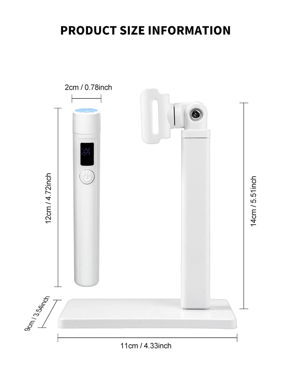 Introducing the Mini Professional Nail Art UV LED Light β the ultimate tool for achieving salon-quality manicures in the comfort of your own home. This portable and rechargeable nail dryer features an innovative upright design, making it easy to use for both quick touch-ups and full nail art sessions. With a powerful performance of 3W, this mini UV lamp efficiently cures all types of gel nails, ensuring a flawless finish every time. The built-in LED display keeps you informed about the curing time, while its lightweight construction makes it the perfect travel companion. Whether you're a professional nail technician or a DIY enthusiast, this nail dryer enhances your nail care routine, allowing you to enjoy beautiful nails anywhere, anytime. Donβt miss out on this game-changing nail accessory that combines style, functionality, and portability!