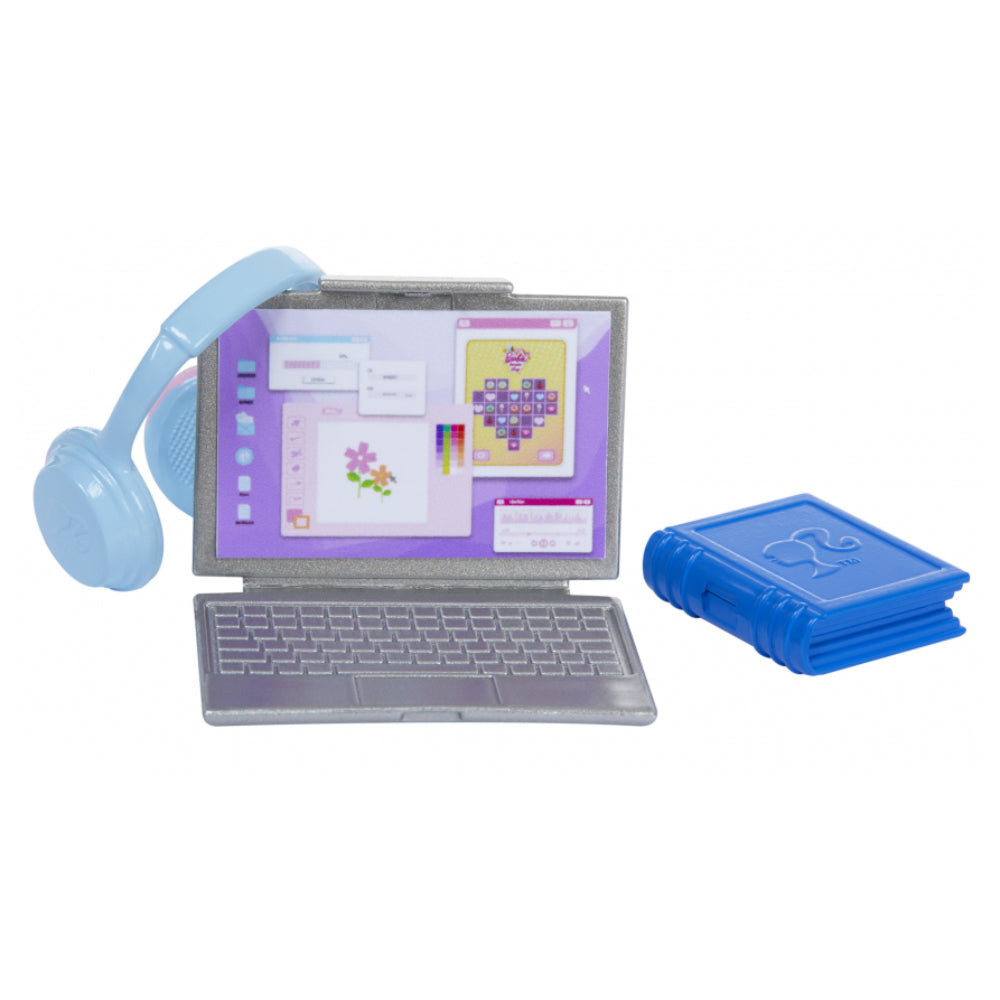 - Includes 7 accessories like backpack, laptop, headphones, and a pencil.