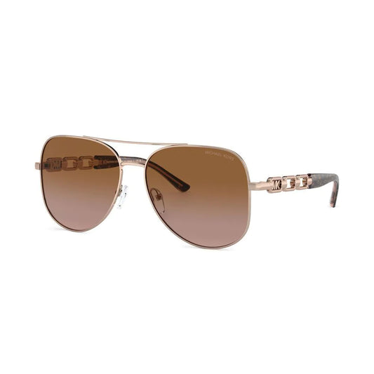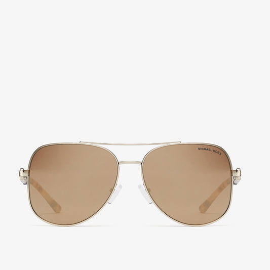 Chianti pilot-frame sunglasses from MICHAEL KORS featuring gold-tone, brown-tinted lenses, UV-protective lenses, and nose pads. These glasses come with a protective case.