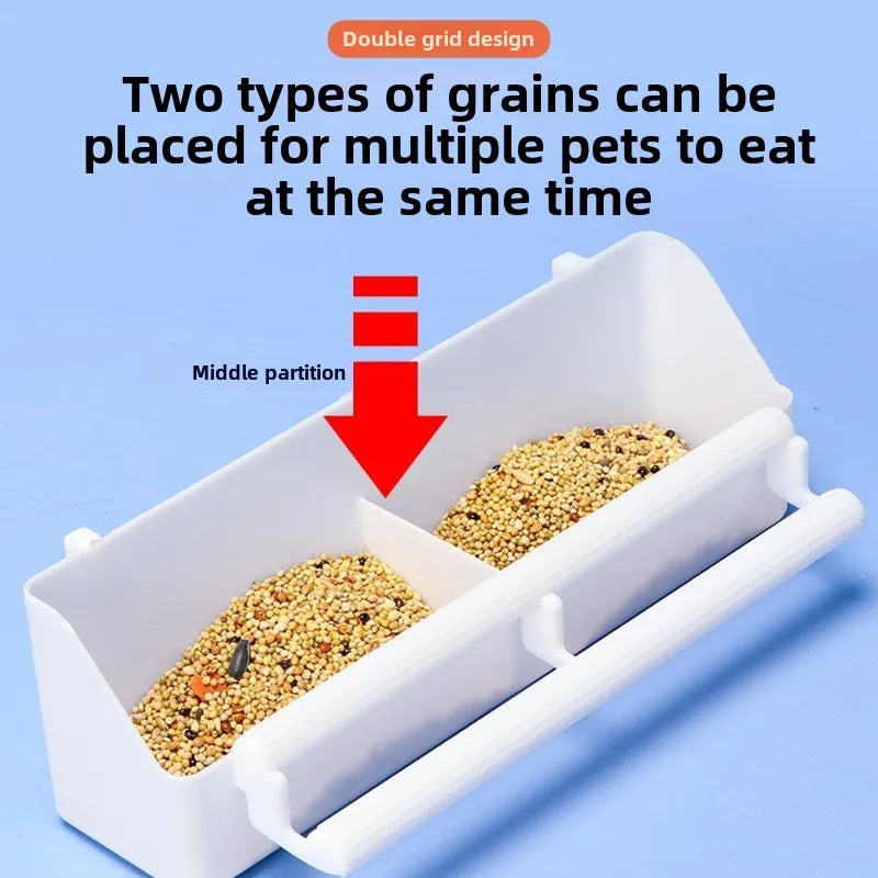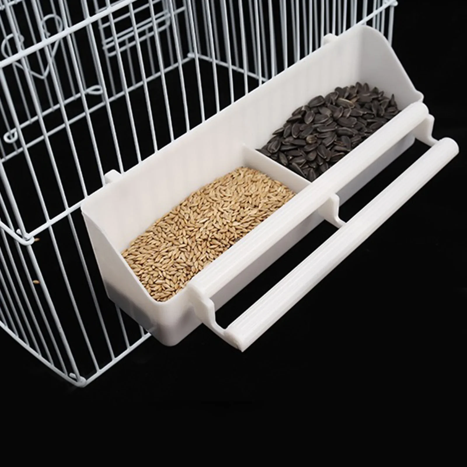 Double Grid Bird Perch Feeder Plastic Dual Bowl Parakeet Detachable Feeder Cage Mount Anti Squirrel Easy Install Food Water Feed