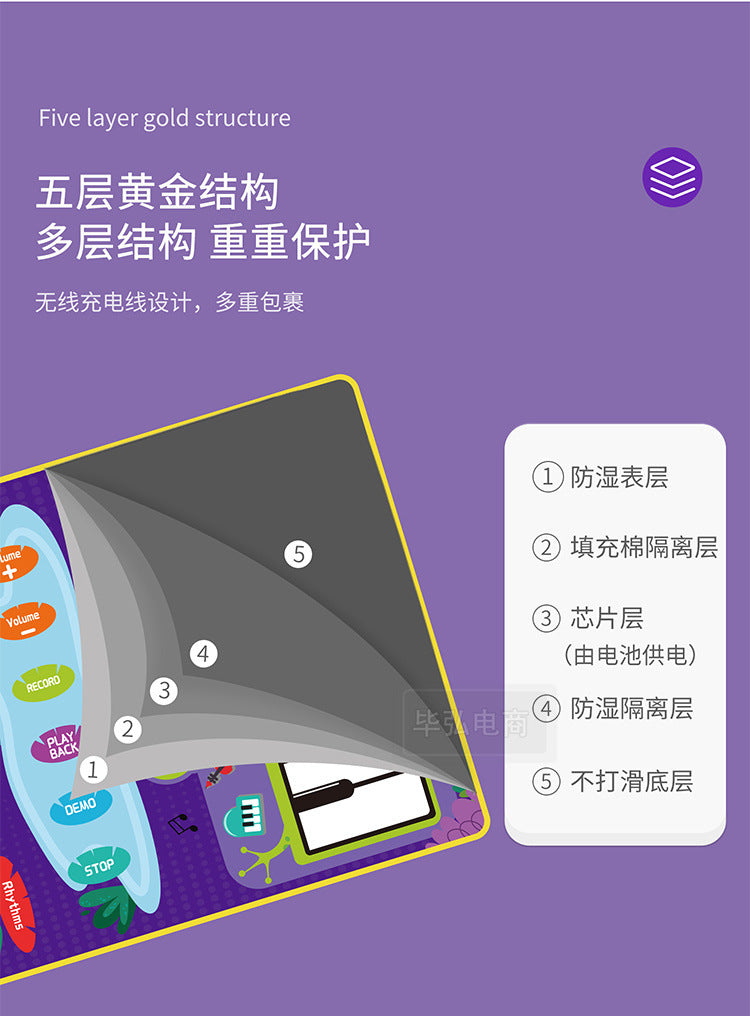 With colorful designs and various sounds, this play mat not only entertains but also stimulates your child's cognitive development and sensory awareness. Watch as they dance, giggle, and learn, creating beautiful melodies and rhythms!