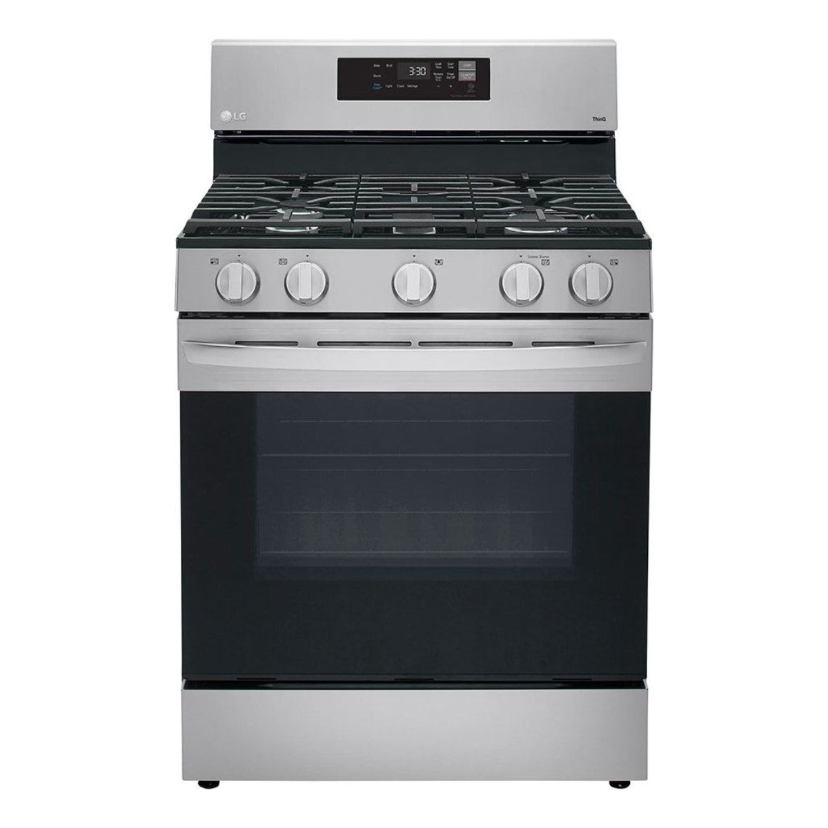 - Five sealed burners support cooking from simmering to high-heat boiling