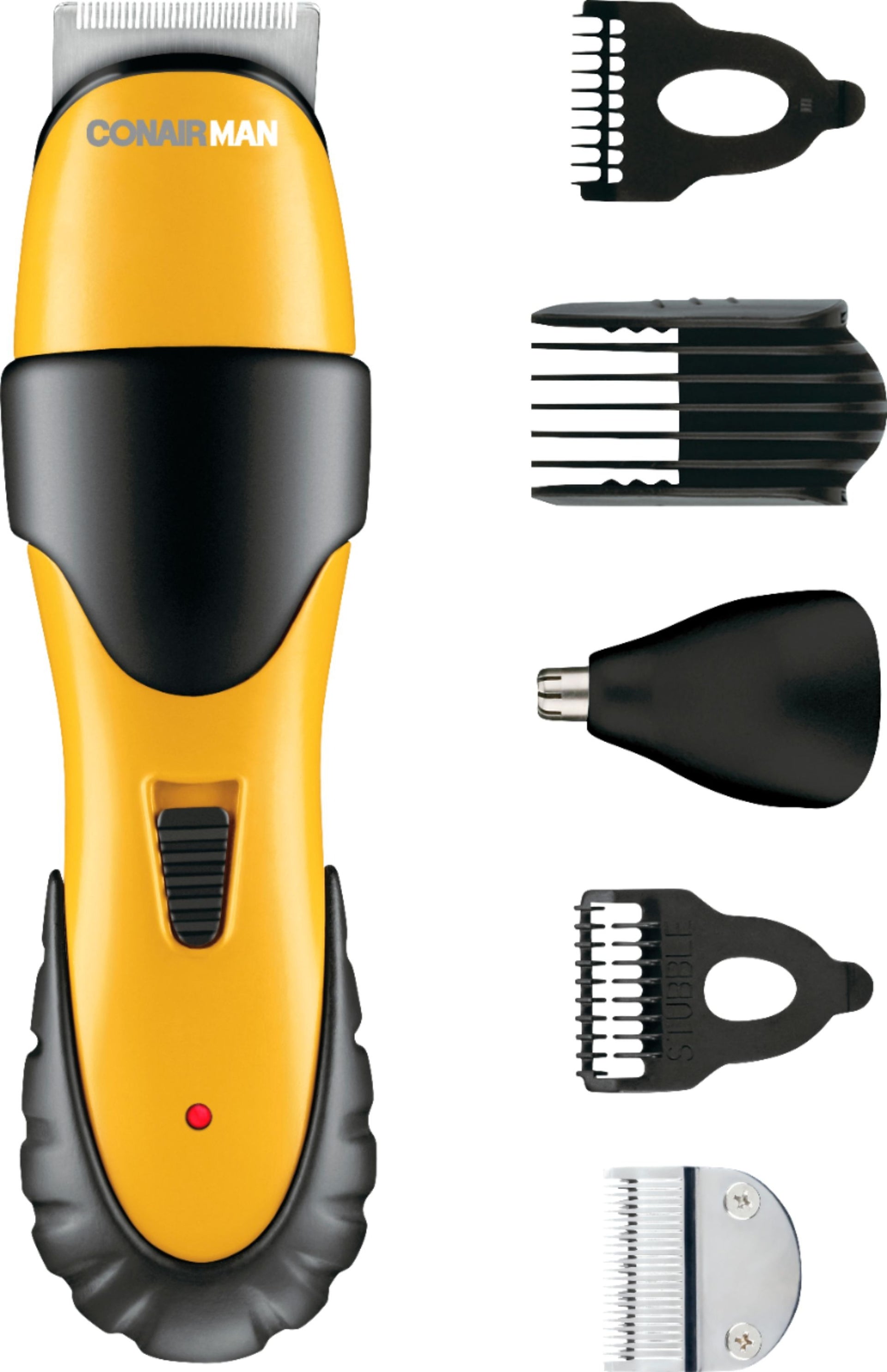The Conair All-in-One Trimmer - Yellow is your ultimate companion for achieving the perfect grooming experience. This versatile trimmer is designed for ease of use and precision, making it ideal for trimming beards, mustaches, and other facial hair. Featuring stainless steel blades and multiple attachments, this rugged tool ensures a no-slip grip and effortless control. Whether you're maintaining a clean look or experimenting with styles, this all-in-one trimmer offers everything you need to achieve professional results in the comfort of your home. Compact and durable, the Conair All-in-One Trimmer is perfect for grooming on the go, making it an essential addition to your Shaving and Grooming Collection.