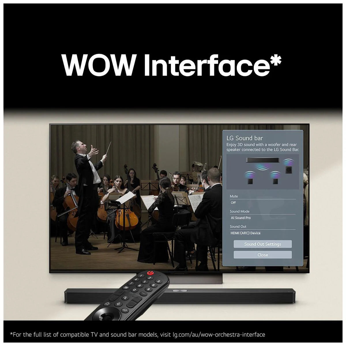 - Single remote control for both soundbar and LG TV convenience.