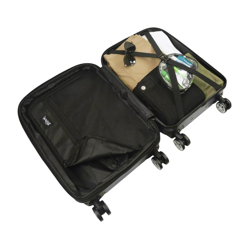 - Polyester-lined luggage interior ensures durability and easy cleaning.