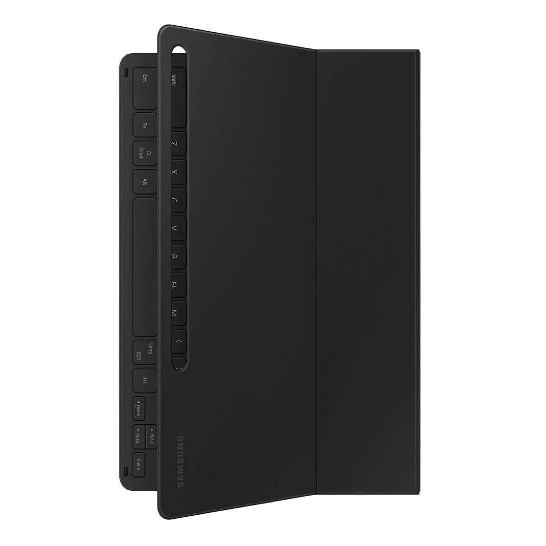 Introducing the Samsung Mystic Black Keyboard Cover For Galaxy Tab S7 FE, Tab S8+, the perfect blend of protection and functionality for your tablet. This innovative cover not only safeguards your device but also transforms it into a portable workstation. With a sturdy yet ultra-lightweight design, the Galaxy Tab S7 FE Book Cover Keyboard unfolds effortlessly, allowing you to type with confidence, just like on a traditional PC. The keyboard features large key sizes for improved typing accuracy, and the integrated pen holder ensures your S Pen is always within reach, enhancing your creative experience. Moreover, this smart cover automatically detects when closed, conserving battery life and making it an essential addition to your tablet accessories collection.