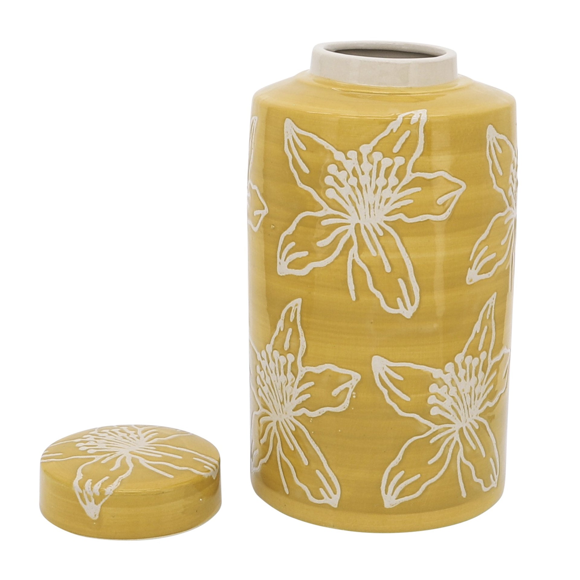 Sagebrook Home Contemporary 10" Ceramic Flower Jar with Lid - Yellow
