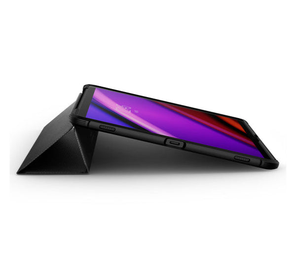 The Spigen Rugged Armor Pro Case for Galaxy Tab S9 is designed to guard your Galaxy with style and functionality. This case is not just a protective cover; it's a powerful accessory that combines a slim profile with robust protection. Made from premium vegan Velo leather and TPU, this case ensures durability without compromising on aesthetics. The versatile screen cover doubles as a kickstand, allowing for hands-free viewing, perfect for streaming or video calls. Finished with sleek carbon fiber accents, it offers a modern and stylish look while providing drop protection through bolstered corners and Air Cushion Tech. With a built-in S Pen holder, this case keeps your accessories organized and accessible, making it the ultimate choice for Galaxy Tab S9 users who demand both style and substance.