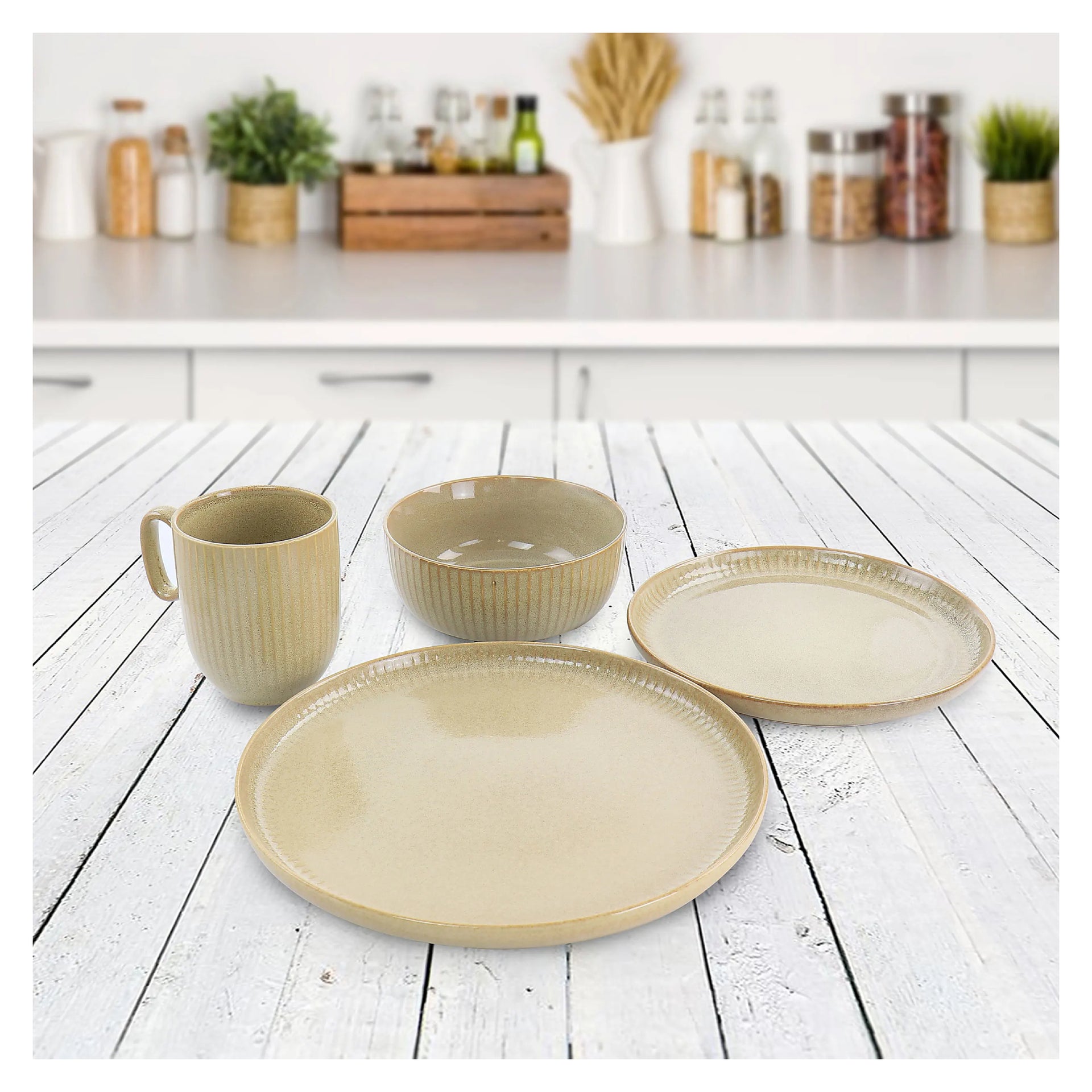 Gibson Elite Blaise Stoneware Dinnerware Set (16-Piece) - Beige