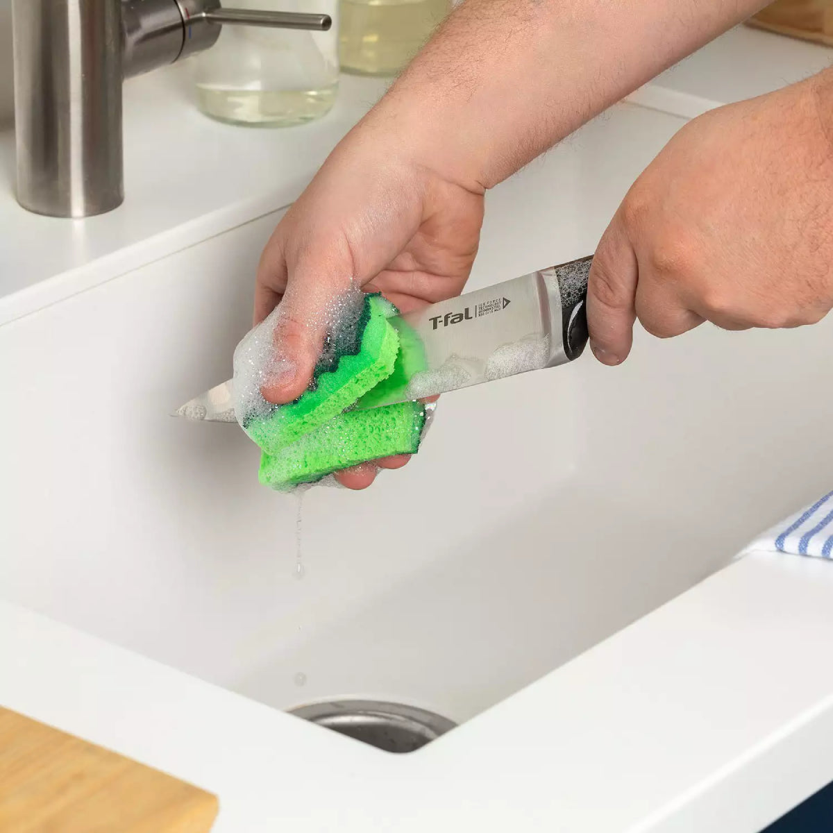 Introducing the T-fal K282SB64 Ice Force Knife Block Set (11-Piece) - Stainless Steel/Black, where precision meets durability in your kitchen. This exceptional knife block set features blades crafted from high-quality German stainless steel, enhanced with ice-hardening technology that ensures superior cutting performance. Whether you're dicing vegetables or slicing meats, this set effortlessly elevates your cooking experience. With ergonomic designs for a comfortable grip, you'll enjoy improved cutting accuracy and efficiency. Experience long-lasting quality and unmatched performance with the T-fal Ice Force Knife Block Set.