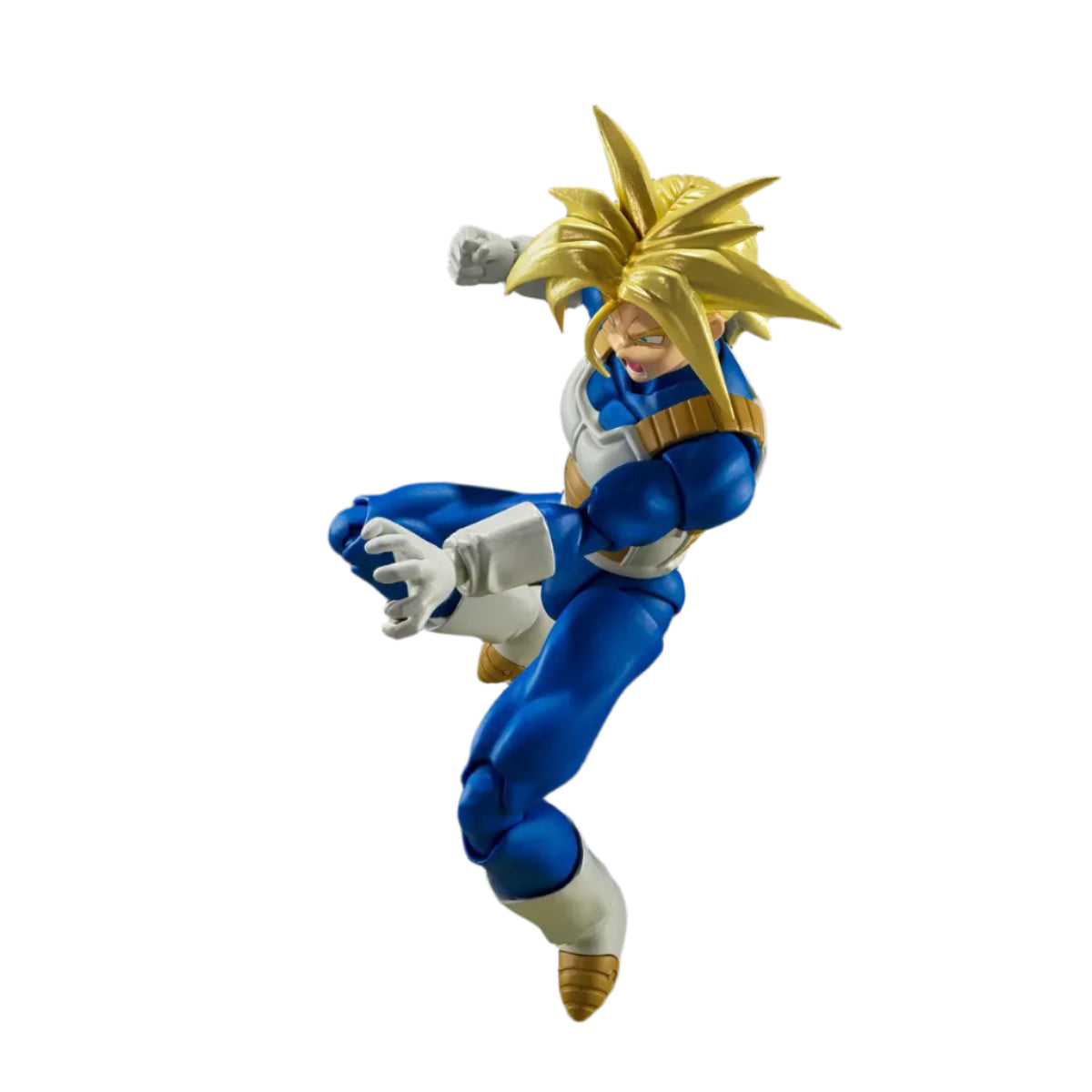 The perfect balance of articulation and proportion is maintained with Super Saiyan Trunks' sculpt. This figure features a frowning headpiece and premium articulation, allowing you to recreate your favorite intense scenes from the iconic Dragon Ball Z anime.