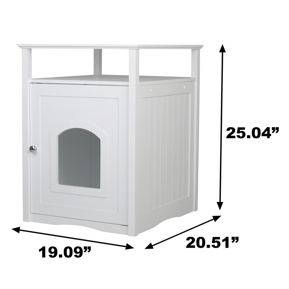 Attractive multi-functional pet house also hides unsightly litter box Classic, clean fiberboard cabinet features wainscoting paneling and stainless steel hardware Provides a safe, discrete resting/sleeping area for dogs and cats Easy to assemble with included hardware & instructions. Litter box sold separately Measures 18.5 x 16.5 x 18.5 inches; 1-year warranty. Warning: Cancer and Reproductive Harm