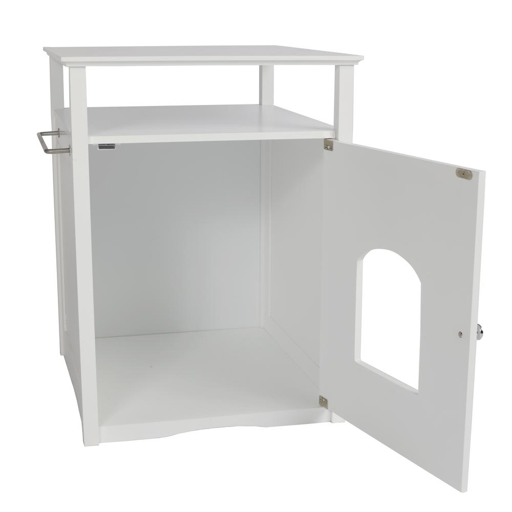 Cat Washroom Litter Box Cover / Night Stand Pet House, White