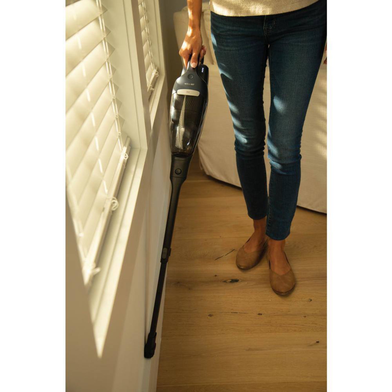 The Electrolux EHVS35P2AI WellQ7 Pet Cordless Multi Surface Stick Vacuum - Indigo Blue is designed for pet owners and anyone seeking a powerful, versatile cleaning solution. This cordless 2-in-1 vacuum combines the convenience of a stick vacuum with the flexibility of a handheld device. The advanced 5-step filtration system and integrated axial cyclonic technology work together to efficiently separate dirt and dust, reducing clogging and ensuring optimal suction throughout your cleaning sessions. The detachable handset makes it easy to tackle pet hair on furniture and upholstery, while the sleek indigo blue design adds a touch of elegance to your cleaning routine. Experience effortless cleaning on multiple surfaces with this innovative vacuum that truly understands the needs of pet owners.
