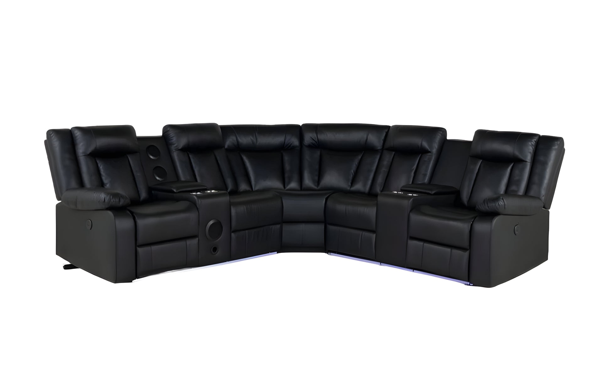 - Modern black sectional enhances living spaces with sleek sophistication.