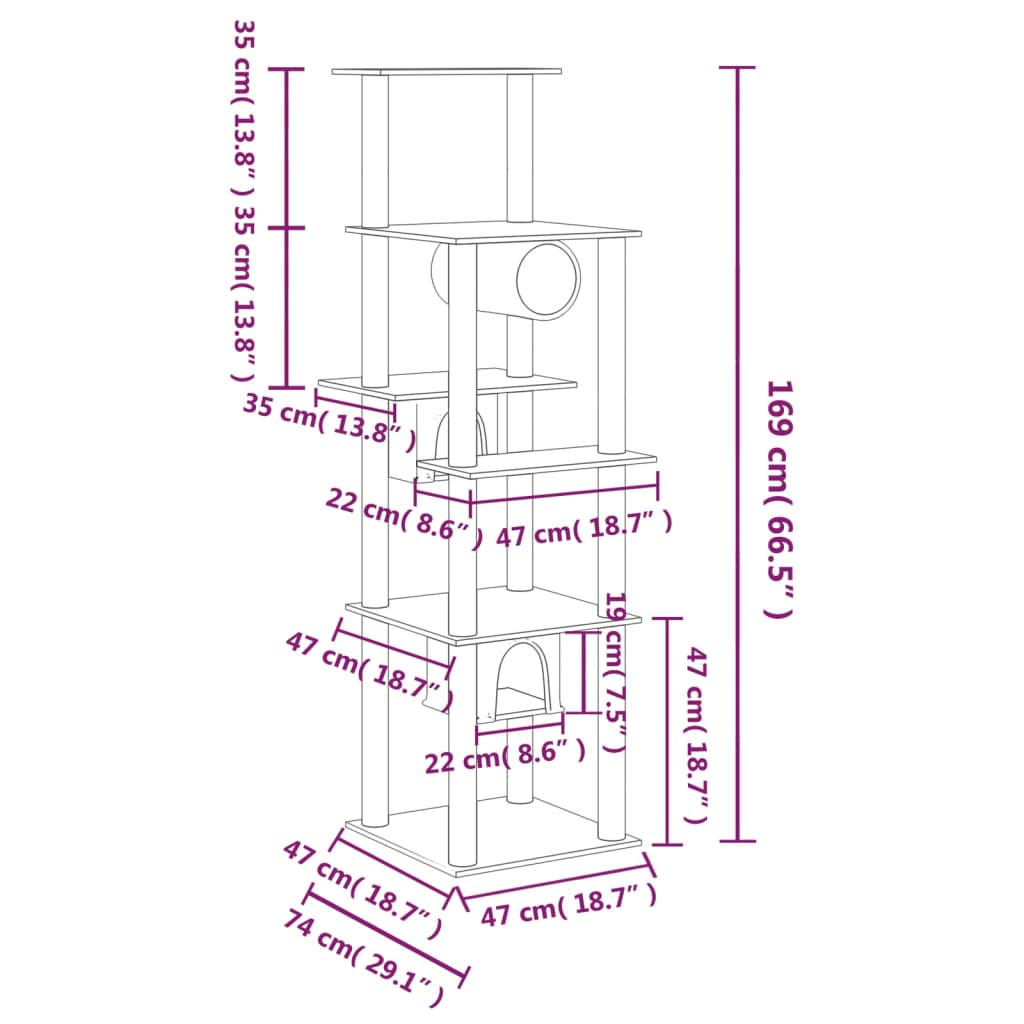 • Spacious Dimensions: Measuring 29.1 x 18.5 x 66.5 in, this large cat tree is perfect for homes with a few cats and fits easily into various spaces.