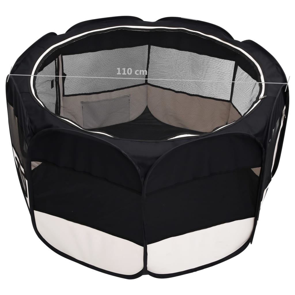 vidaXL Dog Playpen Black and cream Polyester and steel Medium Foldable