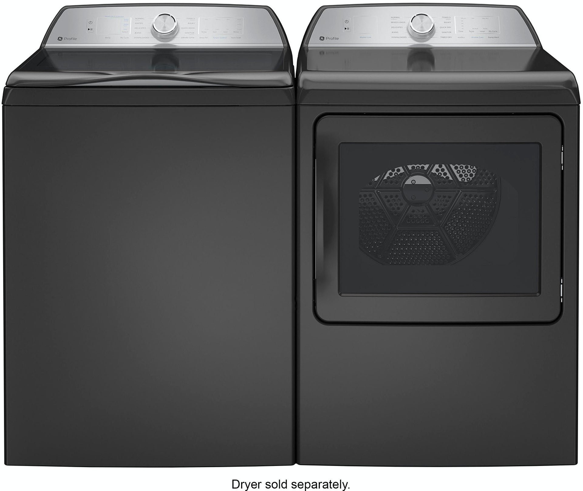 Lavadora de carga superior inteligente de alta eficiencia GE Profile de 4,9 pies cúbicos con tecnología de lavado más inteligente, alcance más fácil y tecnología Microban - Gris diamante