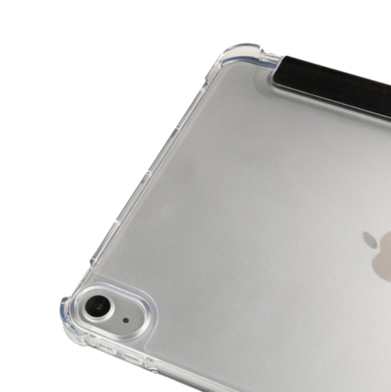 Funda ultra protectora para Apple Ipad 13" M2, parte de la cual está hecha de plástico reciclado. La cubierta frontal presenta un material de efecto satinado y se convierte en un práctico soporte. La carcasa trasera antigolpes está hecha de policarbonato transparente de doble inyección con borde de TPU para facilitar la inserción del iPad. La funda Satin tiene un compartimento interno para guardar tu Apple Pencil y un soporte externo para cargarlo. Aprobada para pruebas de estándares militares.