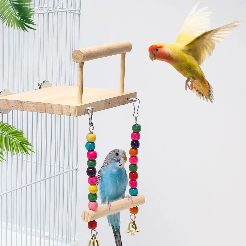 Bird Swing Toy Wooden Parrot Perch Stand Playstand with Chewing Beads Cage Playground for Budgie Birds Cage Decorations