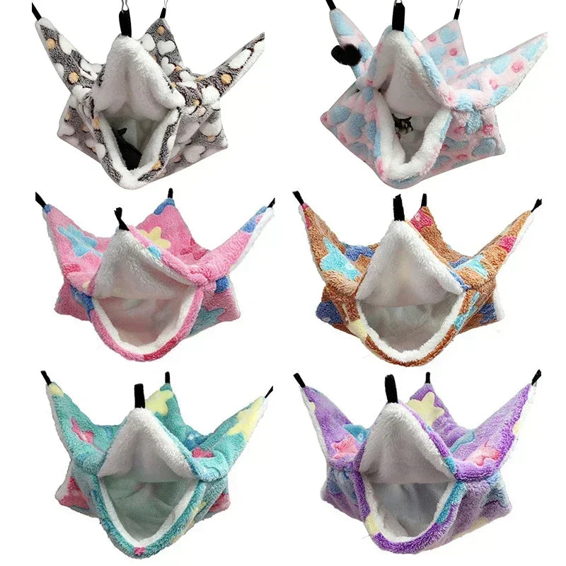 Hammock for Rats Double Thick Plush Winter Warm Bed for Hamster House Nest Sleeping Bag Hanging Tree Bed Guinea Pig Pet Supplies