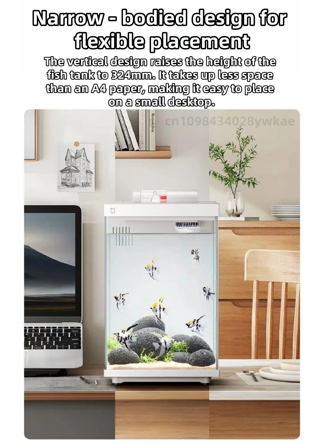 The vertical design raises the height of the fish tank to 324mm. It takes up less space than an A4 paper, making it easy to place on a small desktop.