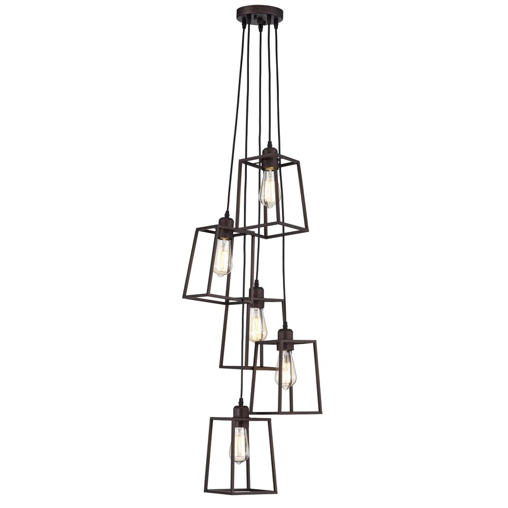 CHLOE Lighting IRONCLAD Industrial 5 Light Oil Rubbed Bronze Large Pendant Ceiling Fixture 18" Wide