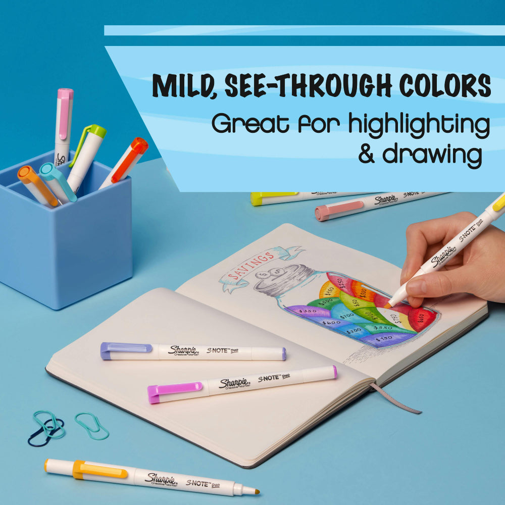 Enciende tu imaginación con los marcadores creativos de doble punta Sharpie S-Note Duo. Son versátiles y divertidos, y sirven tanto como marcadores artísticos como resaltadores, y añaden un toque de color a tus notas, subrayados, dibujos y mucho más. Un extremo de estos marcadores para colorear tiene una punta fina y redonda, mientras que el otro es una punta biselada versátil, que te permite cambiar fácilmente entre líneas finas y trazos amplios. Mientras tanto, la tinta que no se corre mantiene tu trabajo con un aspecto limpio. Estos marcadores para dibujar vienen en un caballete vertical, para que puedas identificar y cambiar rápidamente de color. ¡Da rienda suelta a tu creatividad con Sharpie S-Note!