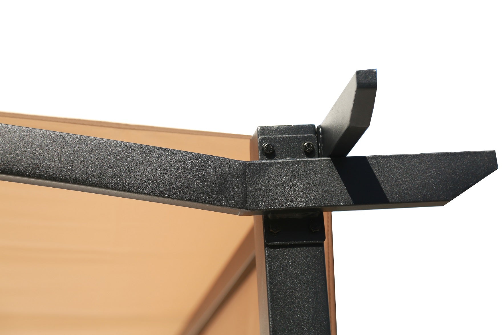 La pérgola exterior arqueada con toldo ajustable y extraíble es la manera perfecta de agregar una habitación a su patio trasero. La mejor característica de este toldo para pérgola es la parte superior del toldo ajustable y extraíble. El material de poliéster apto para exteriores de esta cubierta de sombra para pérgola es repelente al agua y resistente a los rayos UV y a la decoloración, con barras con peso en cada lado que se utilizan para ajustar la sombra de un lado a otro.