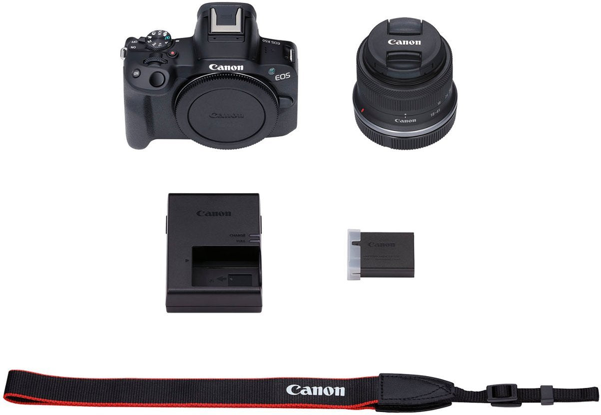 Cámara digital sin espejo Canon EOS R50 con lente de 18-45 mm, color negro