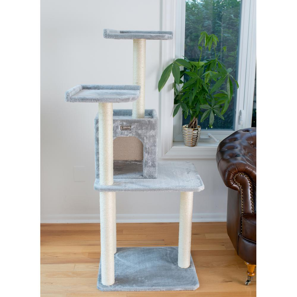 57-Inch Real Wood Cat Tree In Silver Gray With Two-Door Condo