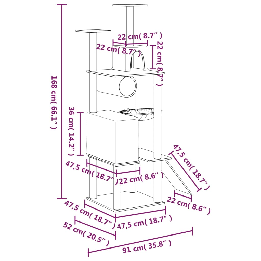 vidaXL Cat Tree Cream Engineered wood, plush, sisal 66.1 in tall Durable